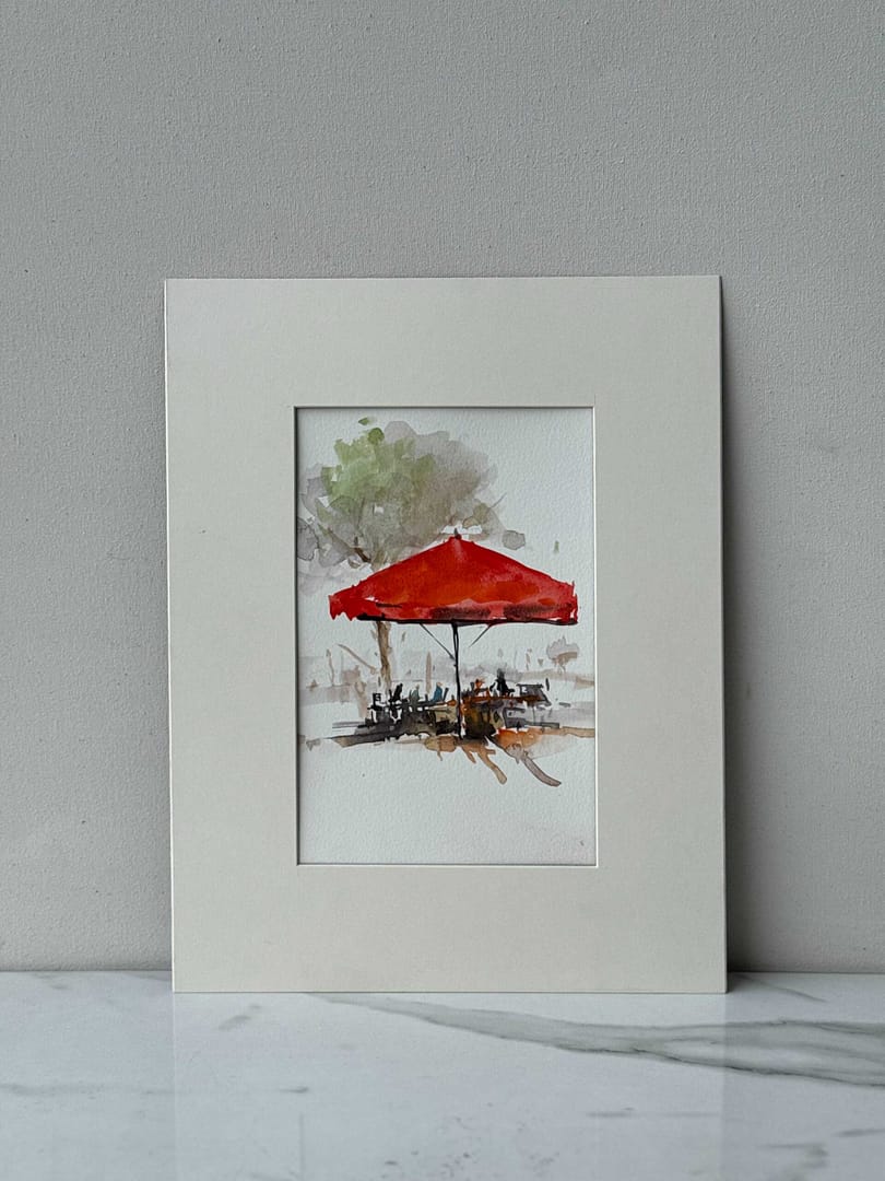 Cozy Table Scene with Umbrella – Cotton Wall Decor